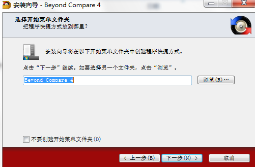 5、设置完Beyond Compare安装路径进入到开始菜单设置界面,该处小编建议大家选择默认安装方式即可。单击下一步