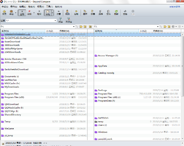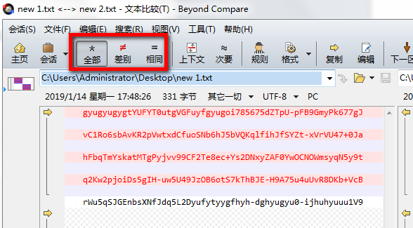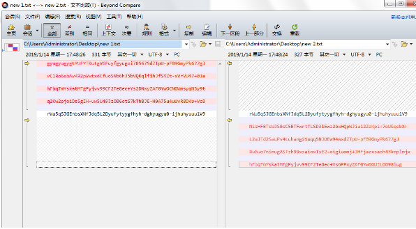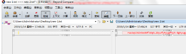 2、选择比较后直接在Beyond Compare软件中开始对比,以下是小编对比的结果。
