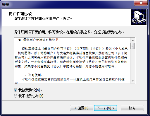 4、选择“我接受协议”这一项,然后点击“下一步”