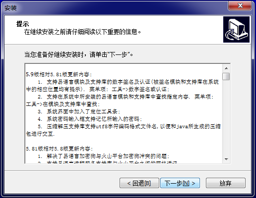 1.支持易语言模块及支持库的数字签名及认证(被签名模块和支持库在系统中的相应位置均有提示).菜单项:工具>数字签名或认证;2.支持在系统中所安装的易语言模块和支持库中查找指定内容.菜单项:工具->在模块及支持库中查找;
