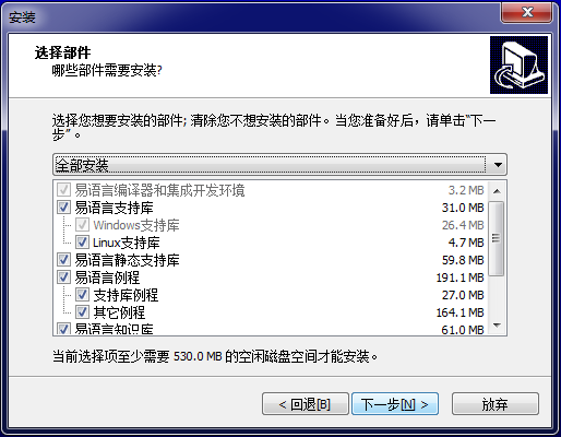 7、选择好安装部件,默认全部选中安装,点击“下一步”