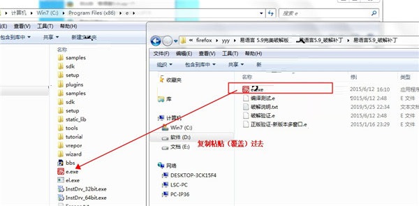 13、将破解补丁解压出来将其中的“e.exe”补丁复制到软件安装位置