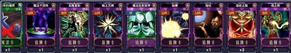因为竞技之门必须要选够40张卡片,所以强欲之壶和强欲之瓶这两张魔陷卡是很好的过牌卡。其中蝶之短剑和执念之剑都是装备卡,基本上有这两张装备卡就不需要选择其他的装备卡,因为这两张卡片被破坏后都是可以回到手动下回合继续装备的。而死者苏生和过早的埋葬是很好的复活卡,可以复活墓地里面的怪兽,被深坑解掉刚刚召唤出来的高兴怪可以马上复活,打对手一个措手不及,而神圣防护罩和鹰身羽毛扫、巨大化、灵魂捕获者这几张卡片都要看场面在恰当时机使用。剩余的魔陷卡就可以往深坑、同路人、陷阱反击、陷阱干扰阵、魔法干扰阵。一般魔法陷阱卡就基本选这些最为合适了。