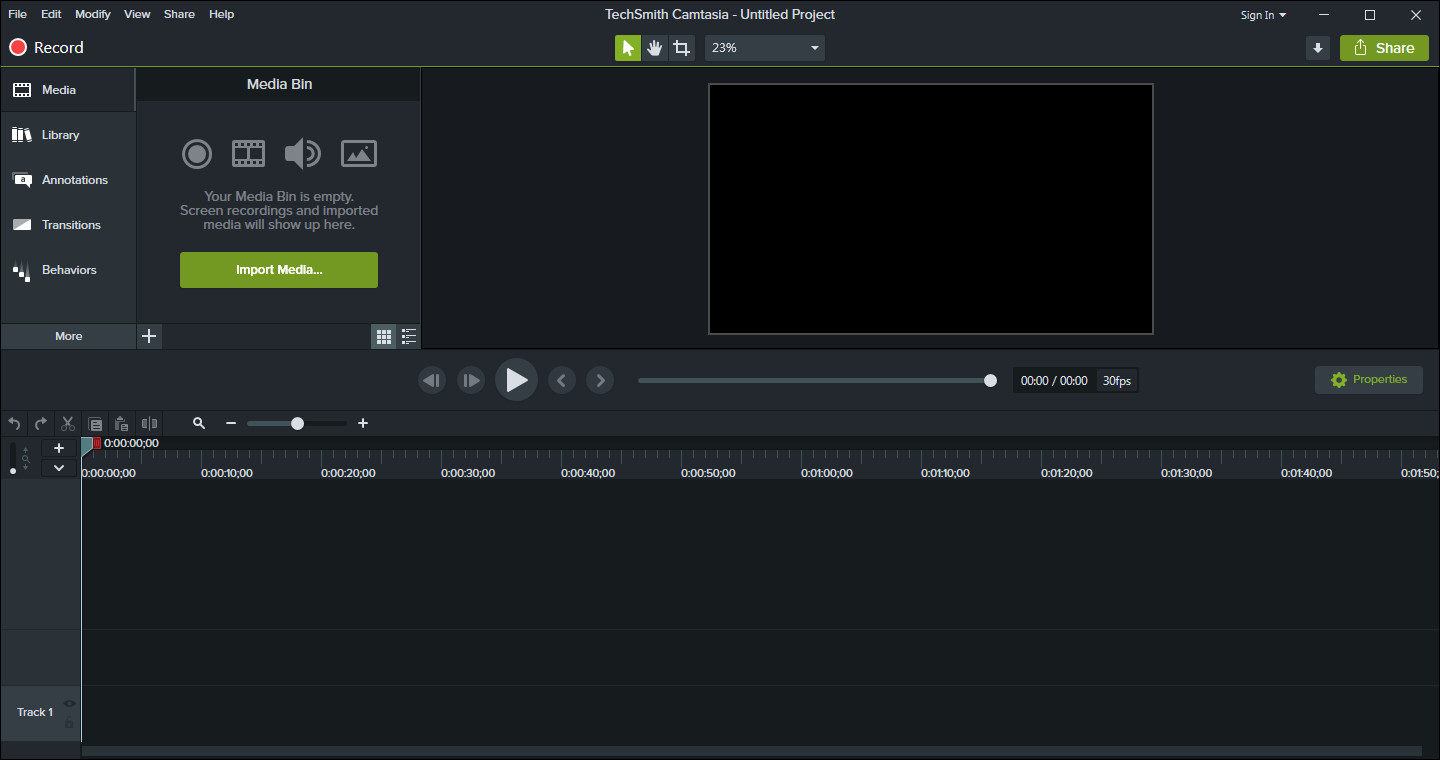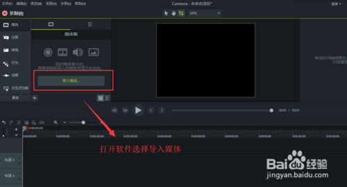 Camtasia Studio 2019破解版时间轴轨道不够用了怎么办?启动Camtasia 2019软件,选择媒体选项面板,在媒体选项中找到“导入媒体”选项。
