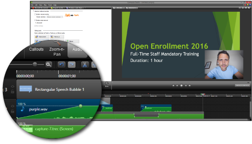 从软件的免版税音乐和音效库中选择。Camtasia可让用户录制和编辑音频片段,为用户的视频提供完美的音频。
