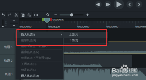 除了点击那个加号之外,还可以在时间轴空白处右键鼠标,选择插入轨道,选择上面或下面。