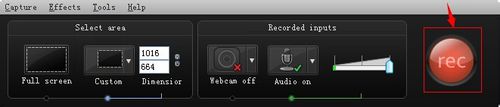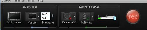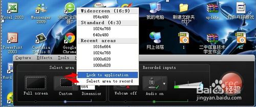 在录音工具中选Custom(自定义),然后根据需要灵活选取,Lock to application(锁定当前的应用程序),Select area to record(在屏幕上选择录制区域);