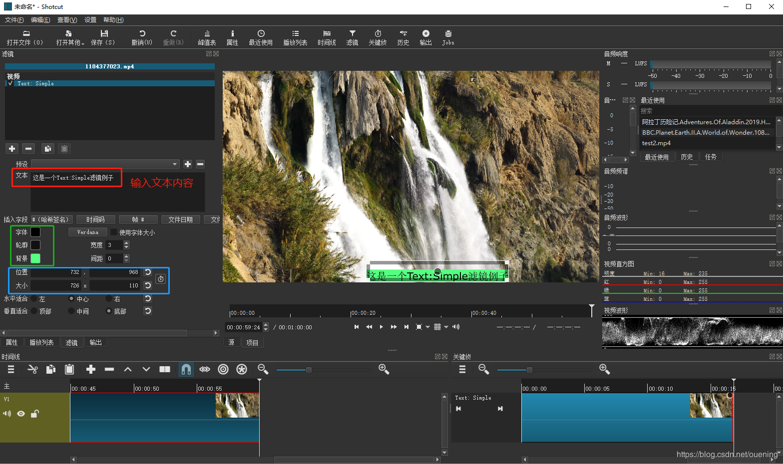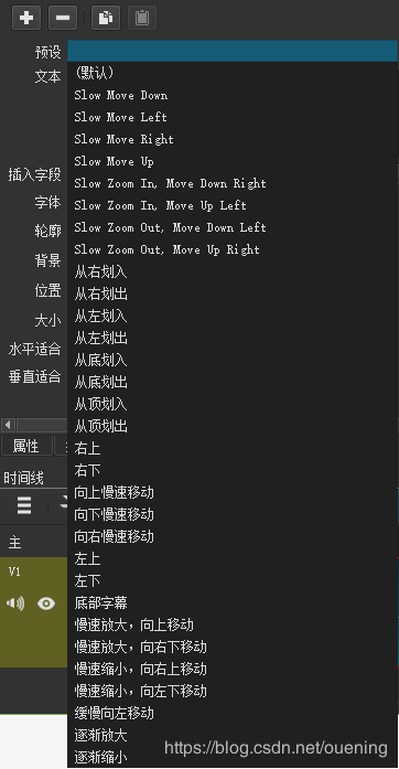 很多时候我们想实现文本字幕的一些动图效果,shotcut的文本滤镜提供了很多种预设方案: