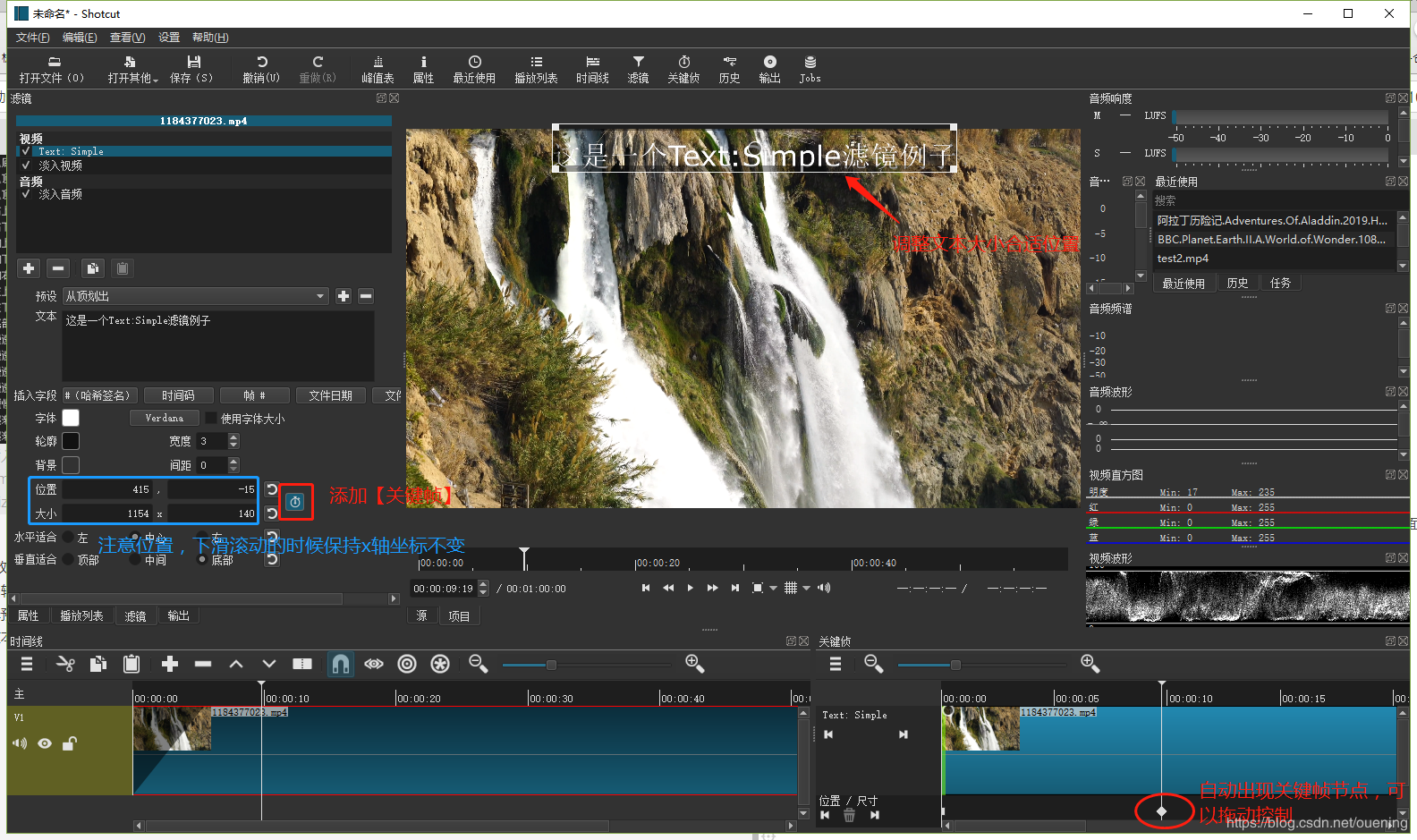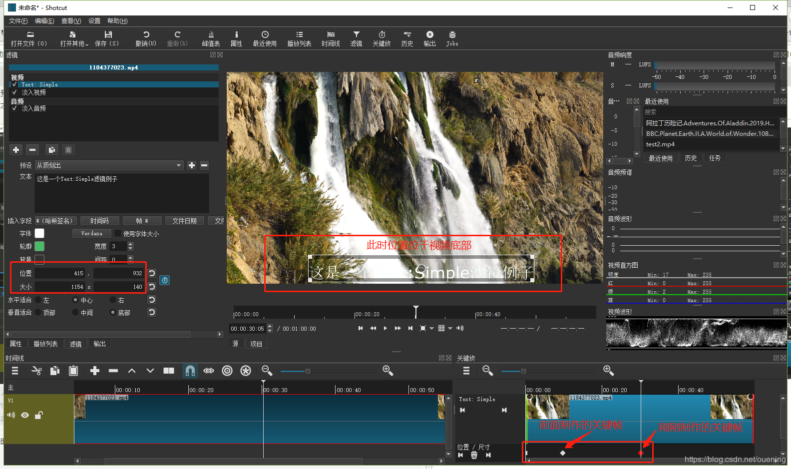 (1)时间轴选择合适位置,该时刻作为字幕滚动开始的地方