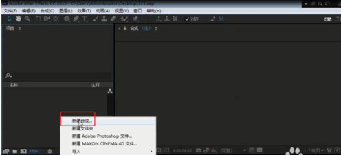 1.右击最上方的“合成”,再点击“新建合成“即可