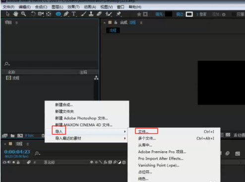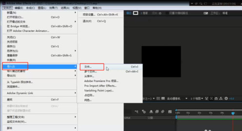 3.在项目面板双击双击就会出现“文件”,再点击“导入”、“文件”;