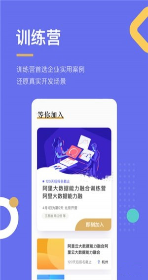 1、训练营:训练营首选企业实用案例,还原真实开发场景。