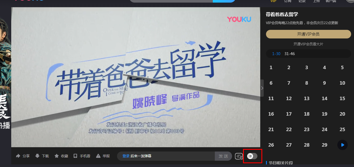 点击红框内的这个“弹幕”按钮,就可以实现弹幕的开启和关闭了。