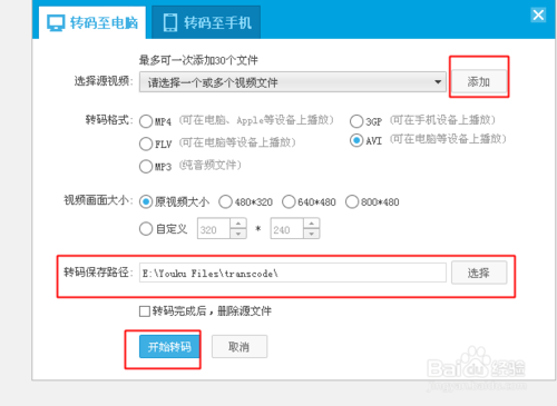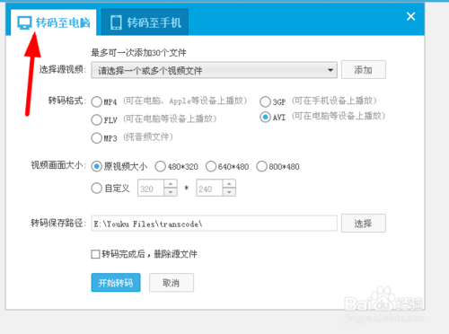 这里有两个选项,一个是转码到转到电脑,一个是转到手机,我们选择转到电脑
