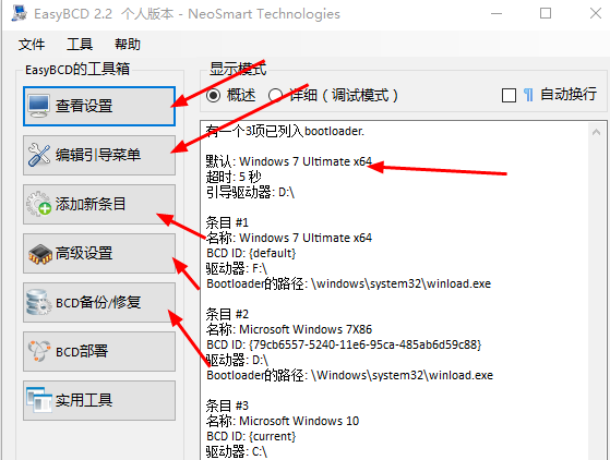 安装完毕,打开easybcd,会有很多选项,我们一一来阐述。首先你可以查看设置,你可以看见本机的启动项,引导驱动器等基本信息。