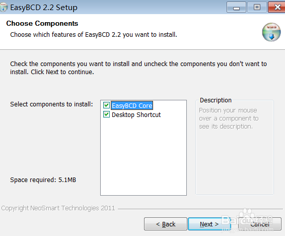 接下来是组件的选择,第一个是必选的,第二是桌面快捷相关的,不想在桌面上创建的话可以去掉勾选。