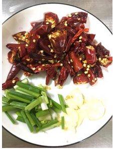 2.准备点干辣椒段,根据自己喜好选择,再来点葱姜蒜。