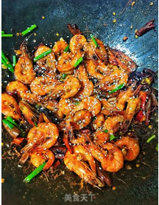 6.差不多了就大火锅边淋入料酒稍许,调小火,生抽,椒盐,花椒粉调味,撒点白糖中和辣味,最后再来点葱段芝麻增香。翻炒均匀即可出锅装盘。