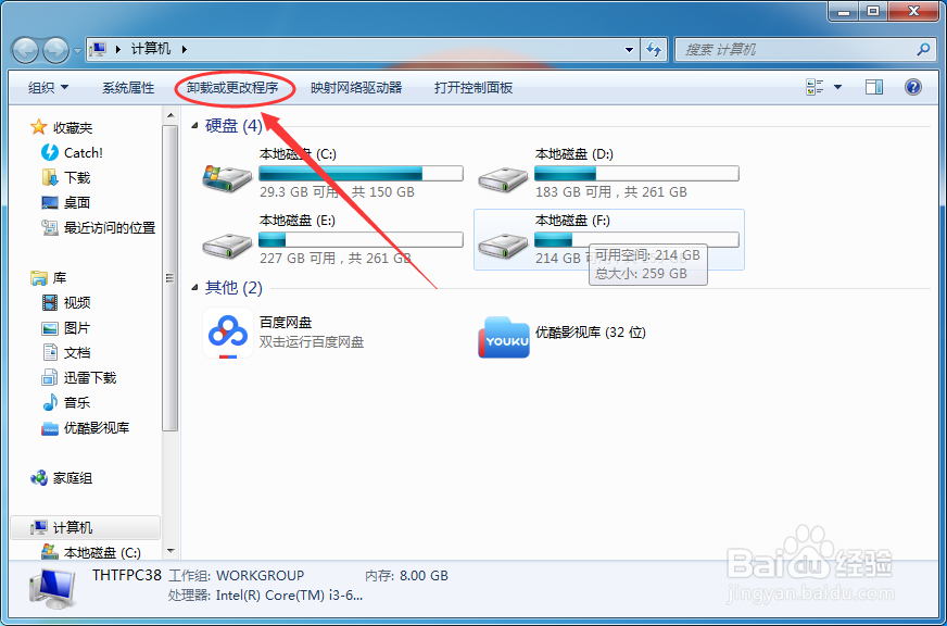 office2013怎么卸载干净?首先,双击打开“我的电脑”,点击打开“卸载或更改程序”