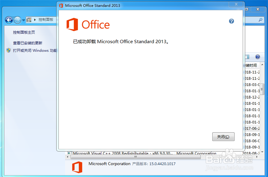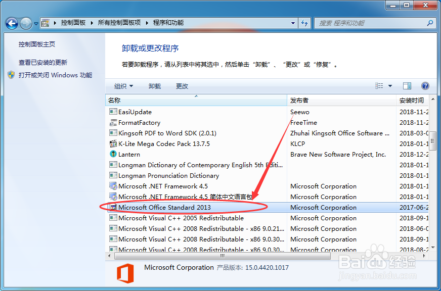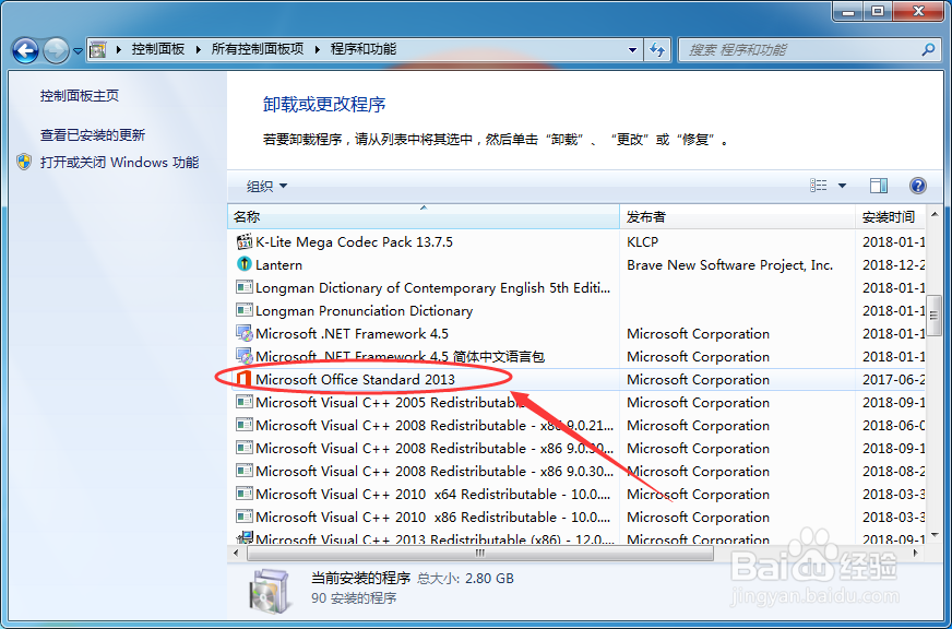 此时,我们会看到卸载或更改程序界面里还残留着“microsoft office standard 2013”。