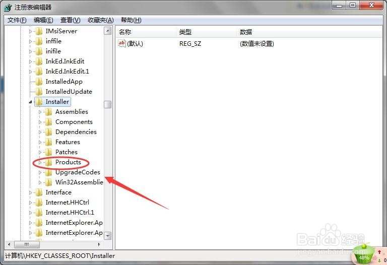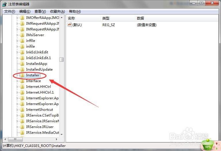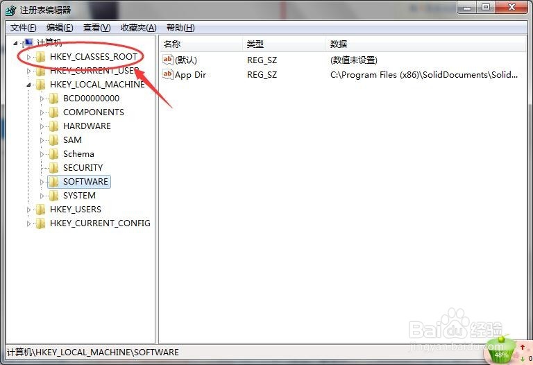 弹出注册表编辑器窗口,选择HKEY_CLASSES_ROOT,打开子选项
