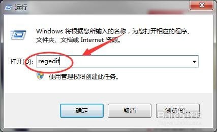 首先单击开始--所有程序--附件--运行,在运行输入“regedit“