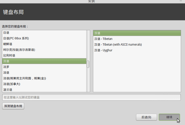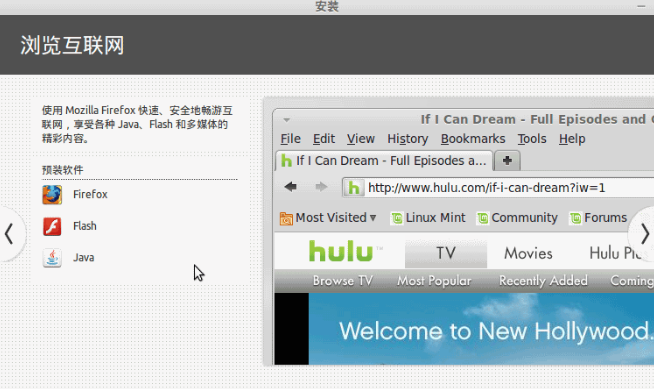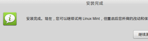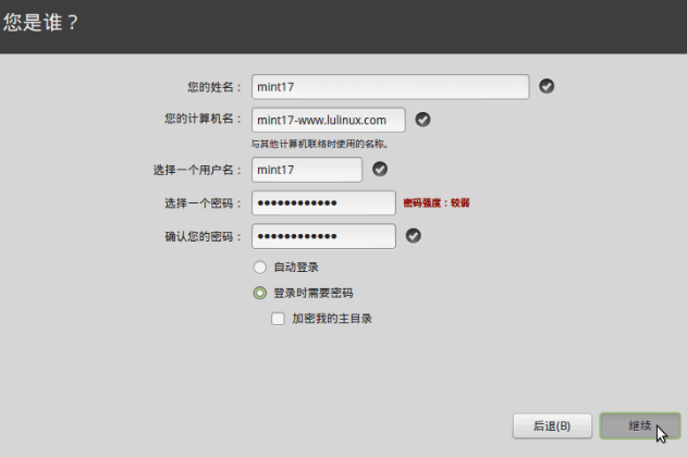 和一些发行版不同,LinuxMint17安装的过程中没有选择软件包的过程。设置好用户名后直接就开始安装了。