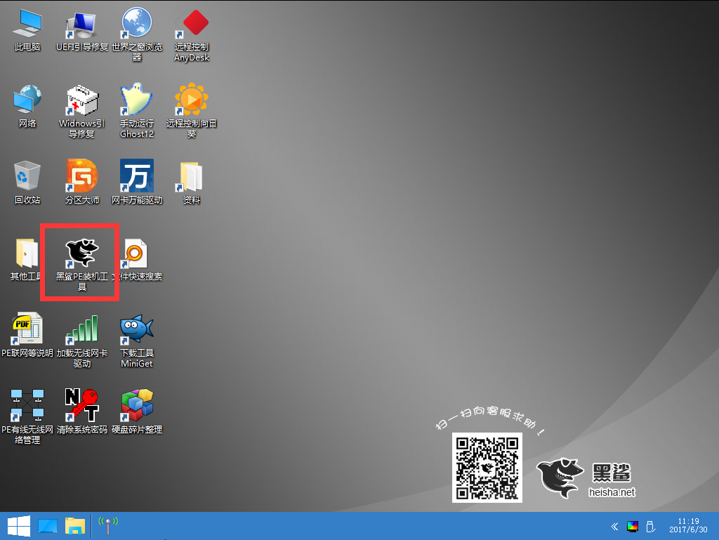 进入到PE系统后,会自动弹出黑鲨装机工具。若没有弹出,也可从桌面打开黑鲨装机工具。在黑鲨装机工具中,选择U盘内的系统,选择所要安装到的分区,点击安装系统,即可开始进行系统的安装。
