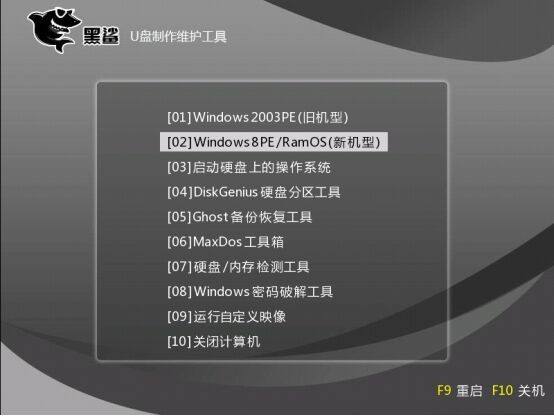 U盘启动盘制作成功后,重启电脑。通过U盘启动快捷键,将U盘设置为BIOS第一启动项,然后根据自己的电脑型号和位数,选择进入到PE系统中。U盘启动快捷键可以通过黑鲨一键重装进行查看。