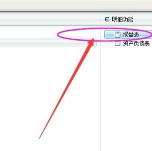 4、点击子功能“(性质)-报表”之后——点击其下的明细功能“损益表”