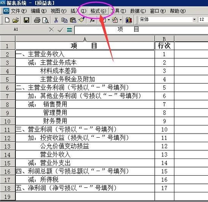 【注意事项:”格式“在界面“报表系统-【损益表】”左上角,正数第五项;】