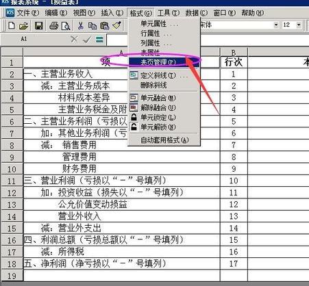 【注意事项:“表页管理(P)”在”格式“按钮下的第六项;】