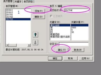 【注意事项:“确认”按钮在窗口“表页管理”右方;】