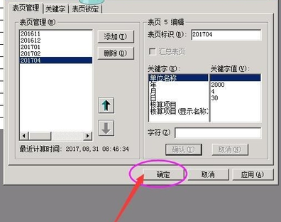 【注意事项:“确定”按钮在窗口“表页管理”右下角;】