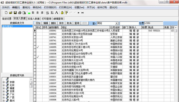 数据处理辅助功能:邮编自动补0功能,邮编自动填写功能(根据地址或者公司名称,软件自动查询)。