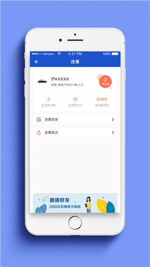 4、违章查询:绑定车辆即可查询车辆的违章信息,更能查询附近违章高发地点的预警,避免违章让驾车更自在。
