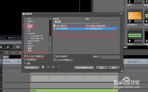 在输出属性框中,我们选择我们需要的格式,然后点击左下角的“出入点之间进行输出”。然后点击“输出”