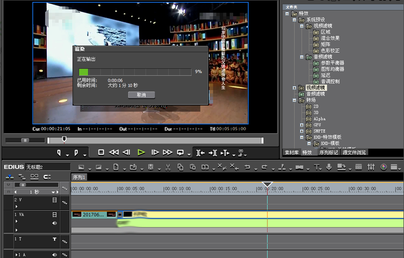 打开之前我们已经制作好的EDIUS源文件,当然也可以是正在制作的源文件。