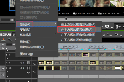 1、在模式菜单中选择“多机位”,在过道标识上点击鼠标右键选择“添加——在上方添加视频轨道”设置需要添加的轨道数量。