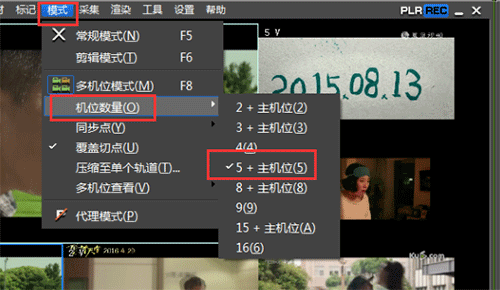 2、根据视频轨道数量,在模式菜单下选择“机位——显示5个机位”。