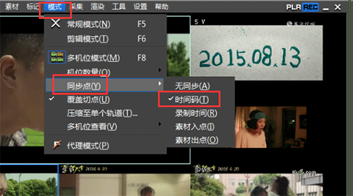 3、根据素材情况在同步模式中选择素材对其方式。我们选择“同步模式——时间码”。
