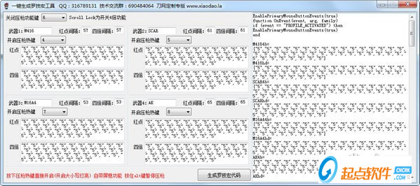 1、一键生成宏文件,生成完可以直接使用,具体使用程序都在程序的文件包里面。2、绿色框是罗技的键代码,键代码查询方法也在文件包里面。