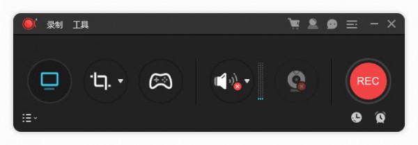 1.选择录制范围录制模式可以选为全屏或者是区域录制或者是游戏模式,点击第一个按钮选择全屏录制,点击第二个按钮,你可以根据需求自定义录制范围和调整录影框大小。