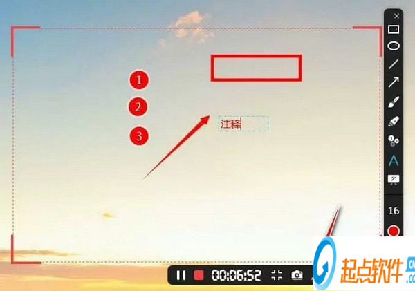 为了让视频更加具有指导性,可以在录制的时候点击工具栏上的笔状“涂鸦”按钮。实时编辑功能包含添加标序、线段、文字、箭头、矩形、椭圆等等。