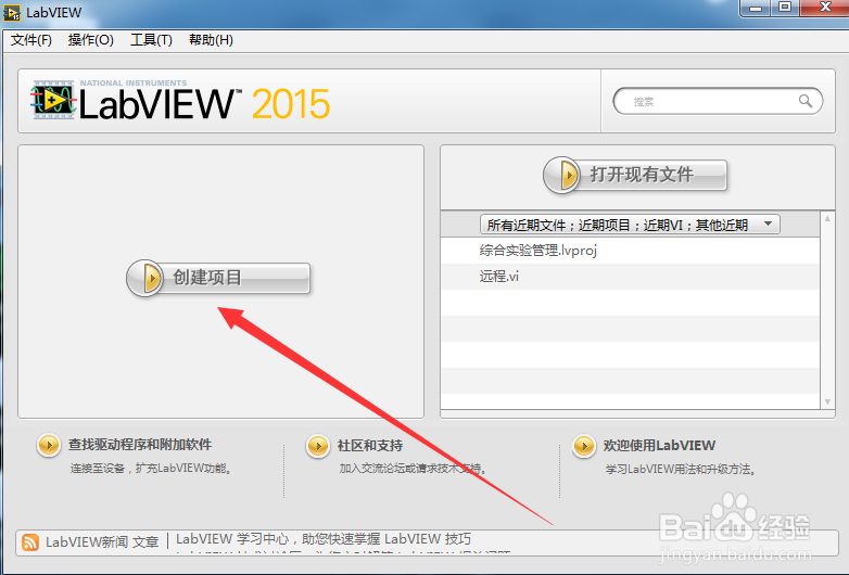 我们前期最好使用中文版labview,因为英语水平实在是受限,我们先打开labview,打开之后我们可以看到一个主界面,我们点击左侧的创建项目。