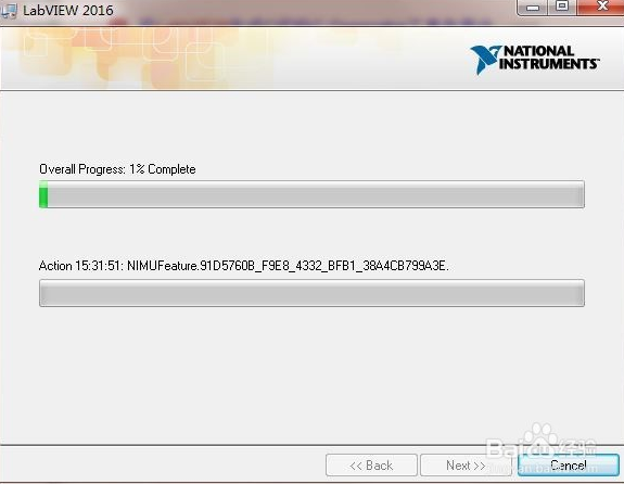 开始安装:上面一行进度条实时显示安装进度(Overall progress:1% Complete),下面一行进度条实时显示安装内容;