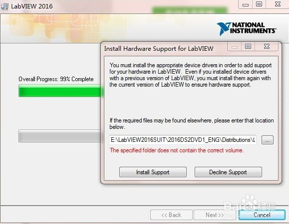当遇到弹出对话框是否安装NI公司硬件驱动的时候(Install hardware support for LabVIEW),选择 Decline Support;