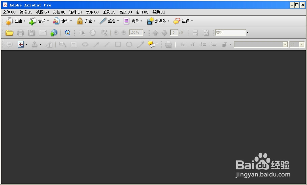 首先安装adobe acrobat,其实这个软件很多人的电脑中都已经安装,尤其是公司电脑。acrobat是个非常重要的办公软件,不仅是本文所述Project文件转为PDF需要使用,其它格式文件需要转化为PDF时都会用到。此处不做详述,您可以很方便的在百度经验中搜索到如何安装,以下是安装好的界面。