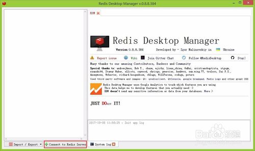 打开RedisDesktopManager客户端软件,首次打开,连接列表都是空白的,可以点击最下方的"Connect to Redis Server"添加新的redis连接