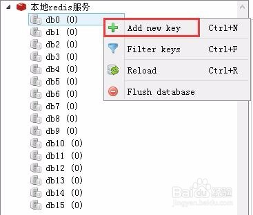 填写完成点击确认,则刚刚添加的连接会出现在左侧列表中,双击打开连接,默认会显示db0-db15